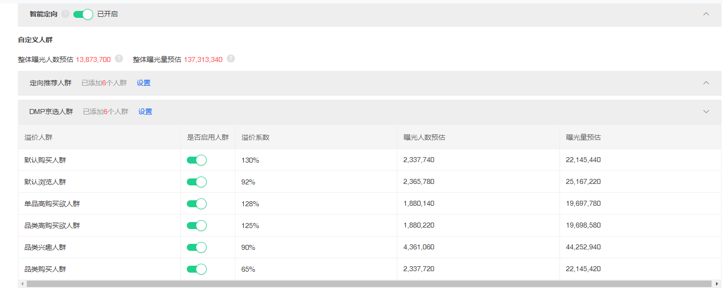 這里還要注意的點(diǎn)就是我們只能定向不要關(guān)閉,有助于我們挖掘人群畫像(之前人為干擾較多的除外),所有的溢價可以調(diào)整盡量不要關(guān)閉,否則對計劃也有很大影響。