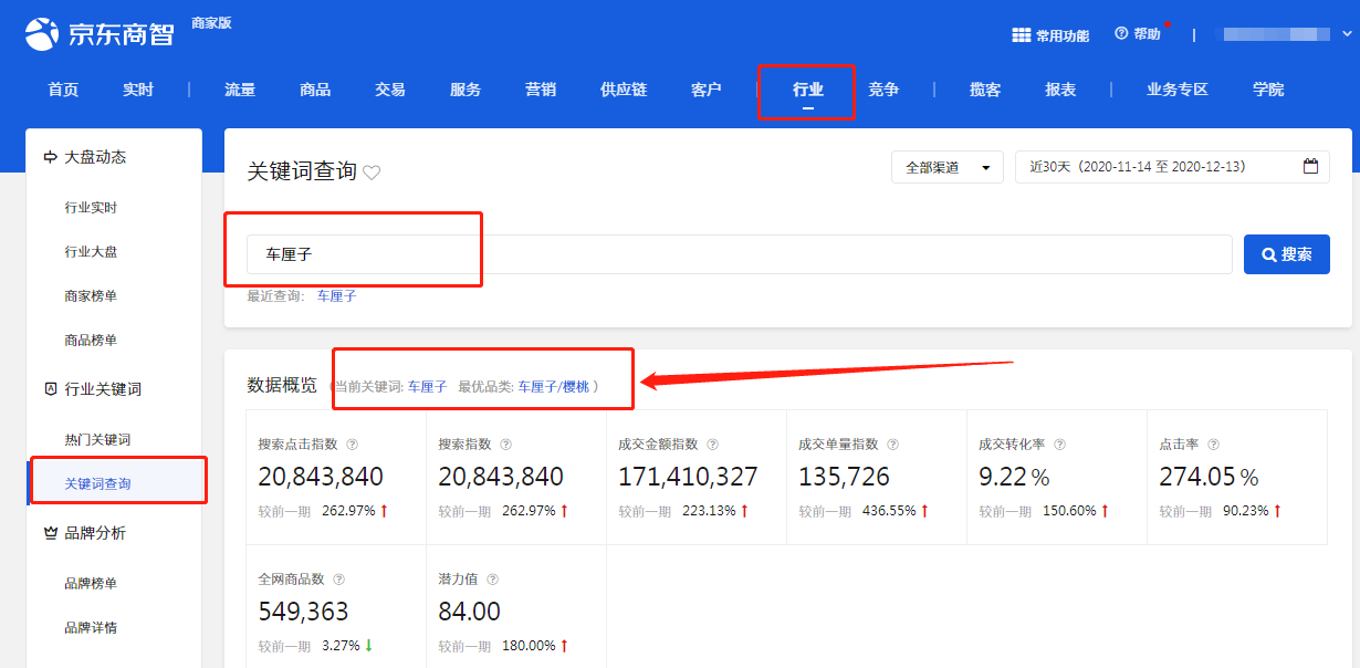 再者就是我們產(chǎn)品的類目一定不能選錯,否則你的產(chǎn)品不會予以任何的扶持,流量的質(zhì)量也非常差。所以在我們上新之前,一定要弄清楚我們最優(yōu)類目是什么。這里可以在京東平臺進行搜索我們準備上架的產(chǎn)品,看絕大部分產(chǎn)品是什么類目的,也可以在商智-行業(yè)-關鍵詞查詢中查詢得知。