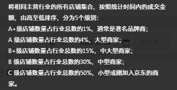 以上產(chǎn)品層面基本帶到,那么下面來看下店鋪層面。說流量,最基礎的點在于我們的店鋪層級,京東的層級是分為A+、A、B+、B、C 。層級越高是代表獲得流量的天花板越高,我們?nèi)粘P枰嘧鰯?shù)據(jù)維護,保證我們的層級相對穩(wěn)定且有所提升,這樣我們的流量天花板會越來越高,后續(xù)也能帶來更多的流量。