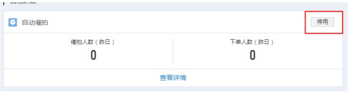 首次開啟點擊自動催拍卡片上的“開啟”按鈕,即可進(jìn)入設(shè)置頁面;路徑:客戶服務(wù)平臺-設(shè)置-自動化任務(wù)-自動催拍