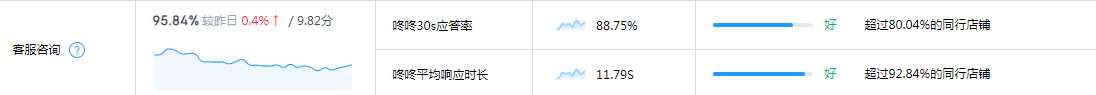 1、咚咚30秒應(yīng)答率:應(yīng)答率即回復(fù)率,計(jì)算公式為回復(fù)率=店鋪人工接待量/咨詢量*100%