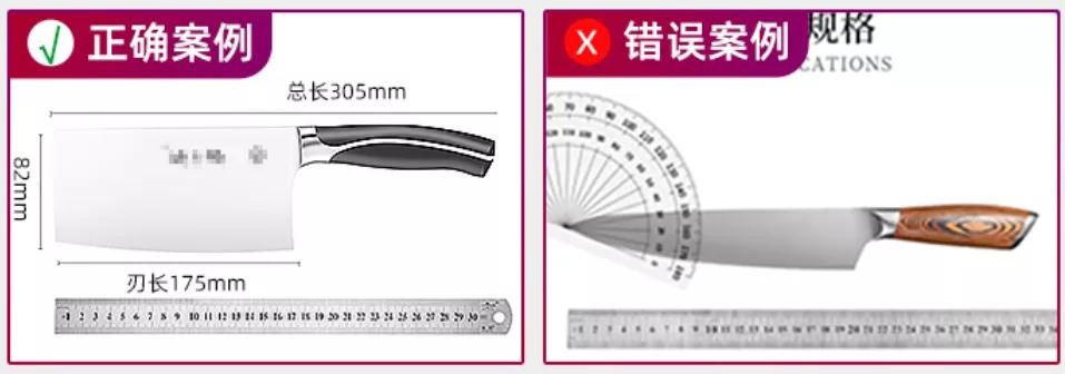 (正確說明:明確標(biāo)識(shí)刀尖角度身(刃長) ;錯(cuò)誤說明:戶外刀具刃長過長)